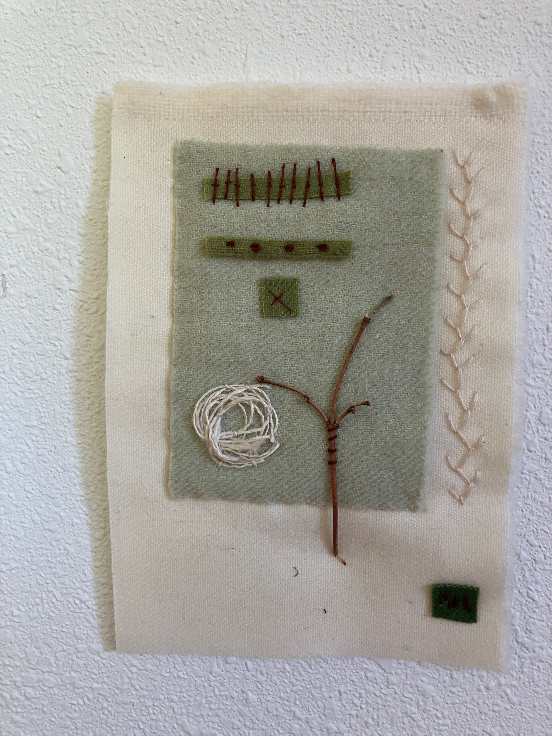 In the morning we will learn and practice a few basic stitches by stitching a sampler. The afternoon will be spent finding a stick and stitching our version. Each will be unique. There are no wrong stitches! Maybe we will each stitch a stick and put them together into a “tree.” Or maybe you will branch (pun) out and stitch an entire tree. Maybe the tree/stick will be inspired by the trees/sticks at the farm or one from your imagination.